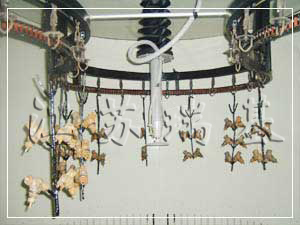 涂裝生產(chǎn)線是通過輸送設(shè)備來實現(xiàn)的連續(xù)生產(chǎn),因此它在涂裝生產(chǎn)線上廣泛被采用.通常用的輸送設(shè)備有:懸擺式輸送鏈,電軌懸掛輸送鏈,滑橇式地面輸送鏈,普通和輕型懸掛輸送鏈,普通和輕型積放懸輸送鏈,地面積放輸送鏈,反向積放輸送鏈等.汽車涂裝線的前處理、電泳生產(chǎn)線,一般采用積放鏈、普通懸鏈、電軌小車等;中涂、面漆采用滑橇式地面輸送鏈或其它形式的地面輸送設(shè)備。對于摩托車、家電或其它工件,可采用普通和輕型積放懸掛輸送鏈。對懸掛輸送鏈,為防止鏈條油污等污染懸鏈上的工件,常采用集油盤和“C”型吊具。